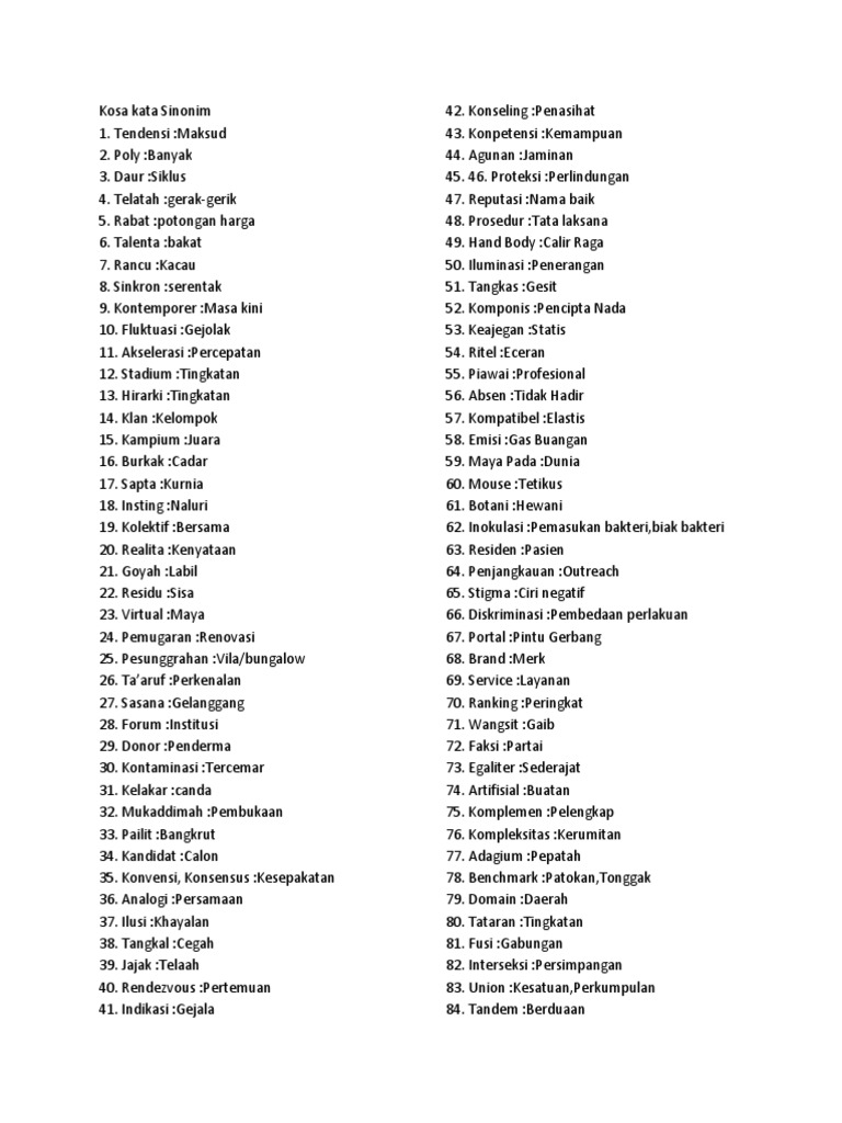 Sinonim adalah kata yang memiliki makna yang sama atau hampir sama dengan kata yang lain. Synonym dari renovasi atau persamaan kata. Pak amir gemar mengoleksi perangko. Sinonim adalah kata yang memiliki makna yang sama atau hampir sama dengan kata yang lain.