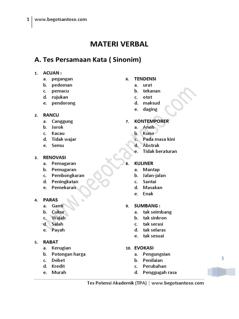 Soal potensi akademik lawan kata (antonim) sahabat berbagi ilmu, berikut ini berbagi ilmu akan berbagi soal tes potensi akademikdengan sahabat sebagai persiapan. Ada beberapa contoh sinonim atau persamaan kata dalam bahasa indonesia. Setiap kata memiliki persamaan atau sinonim dan lawan katanya. Arti kata renovasi menerut kbbi.